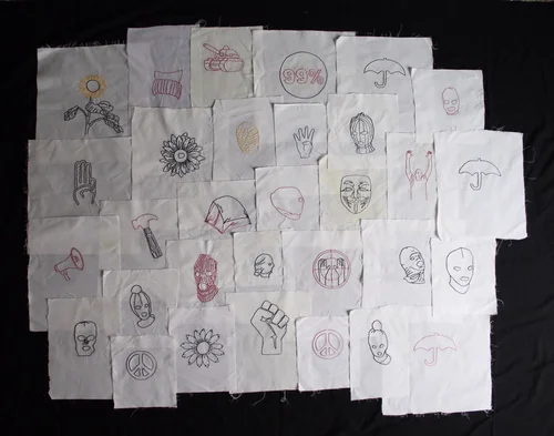 "Hoops of Power" embodies the notion of resistance and power around the world. Numerous symbols unite people in protest for various reasons from speaking out for democracy to opposing racism. Whatever the reason, one symbol can provide a group of people with enough power to create change in the world as they band together under one common cause.